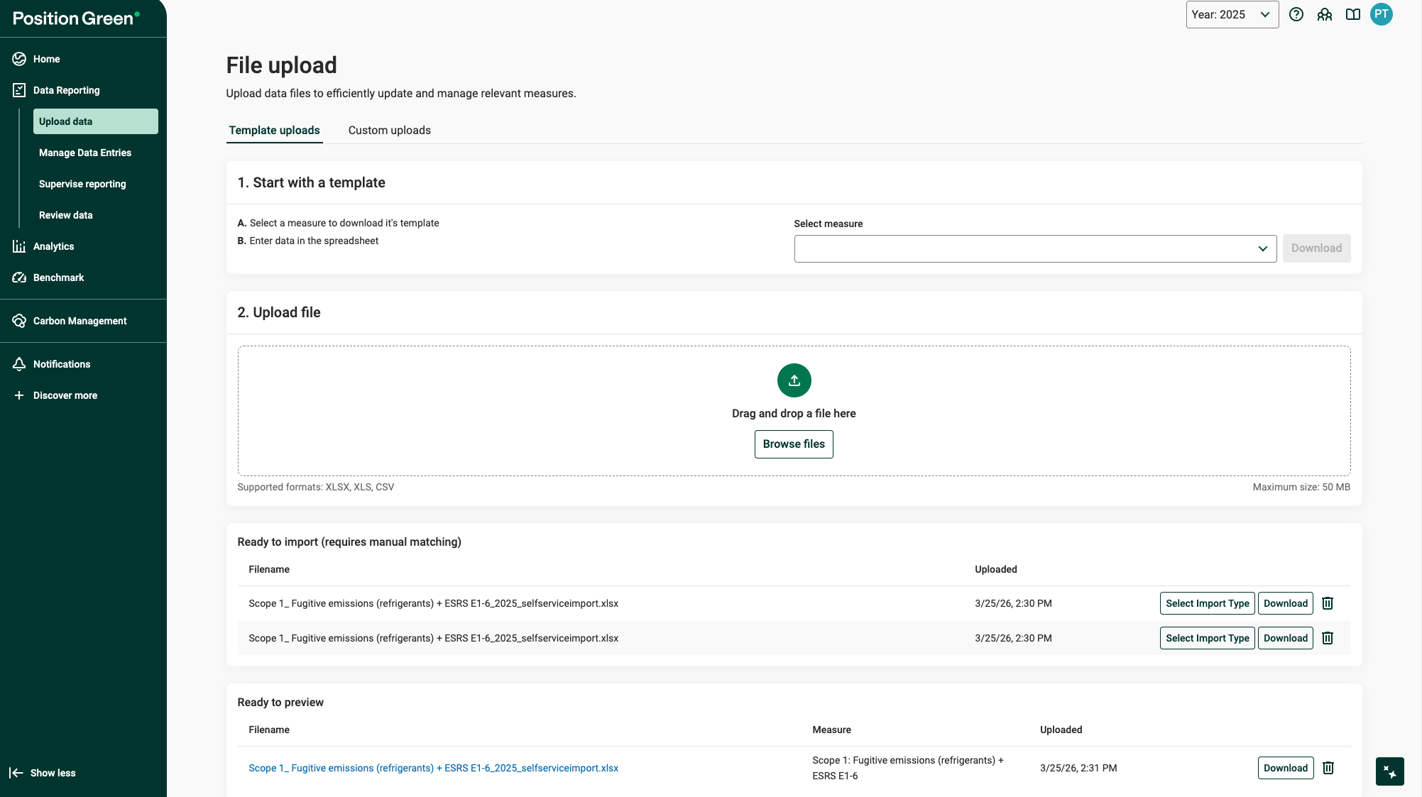 This functionality is available under Data Reporting → Upload data → Standard imports.